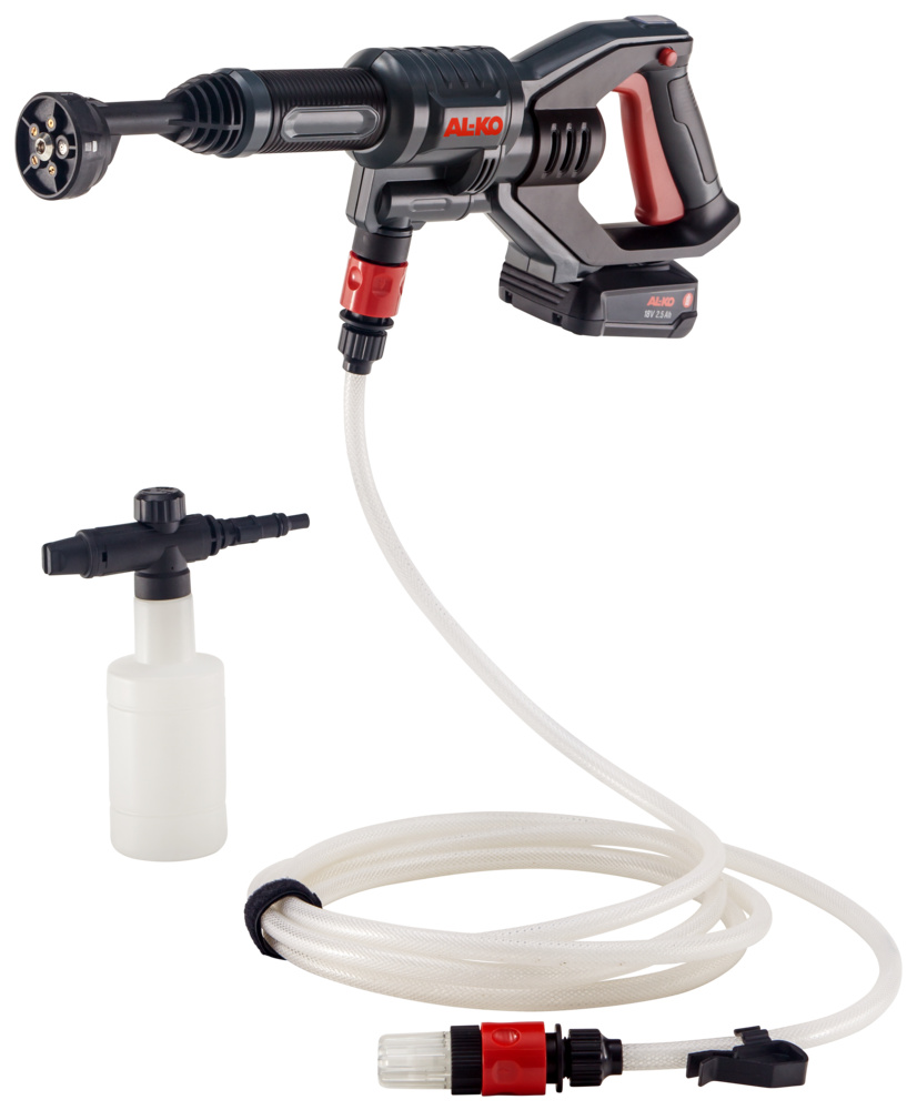 AL-KO PW 1850 (18 V) je lehký AKU vysokotlaký čistič pro čištění, pěnování i zavlažování. Funguje s jakýmkoli zdrojem vody – od dešťového sudu či jezírka po běžný vodovodní kohoutek.