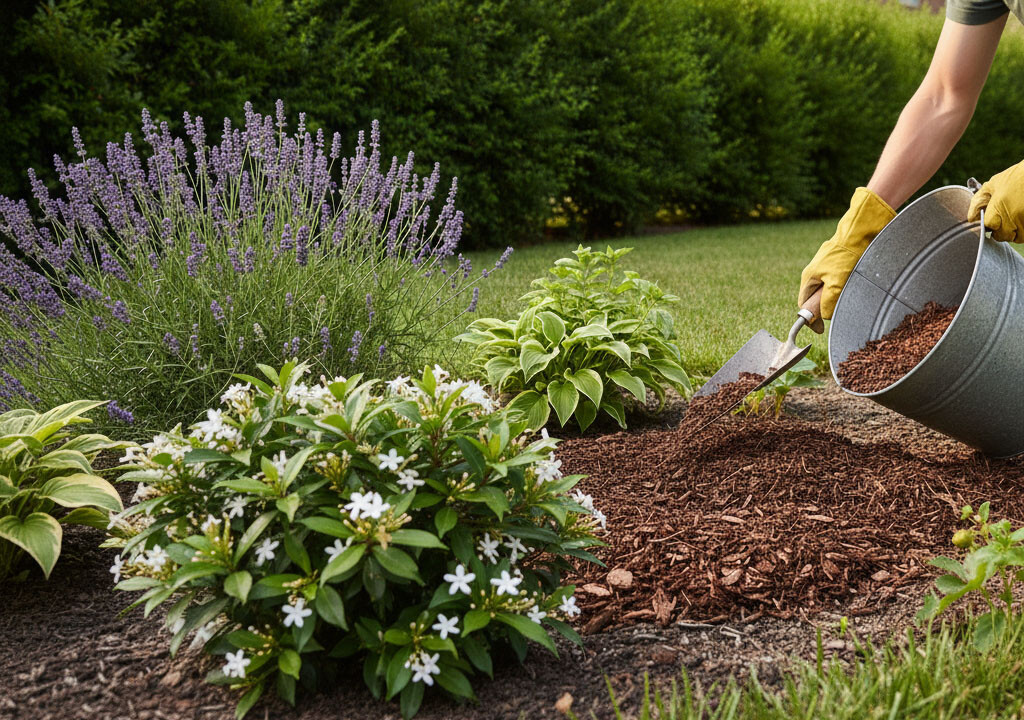 - mulčování, které pomáhá udržovat vlhkost, omezuje růst plevelů a postupným rozkladem organického materiálu pozitivně ovlivňuje pH půdy