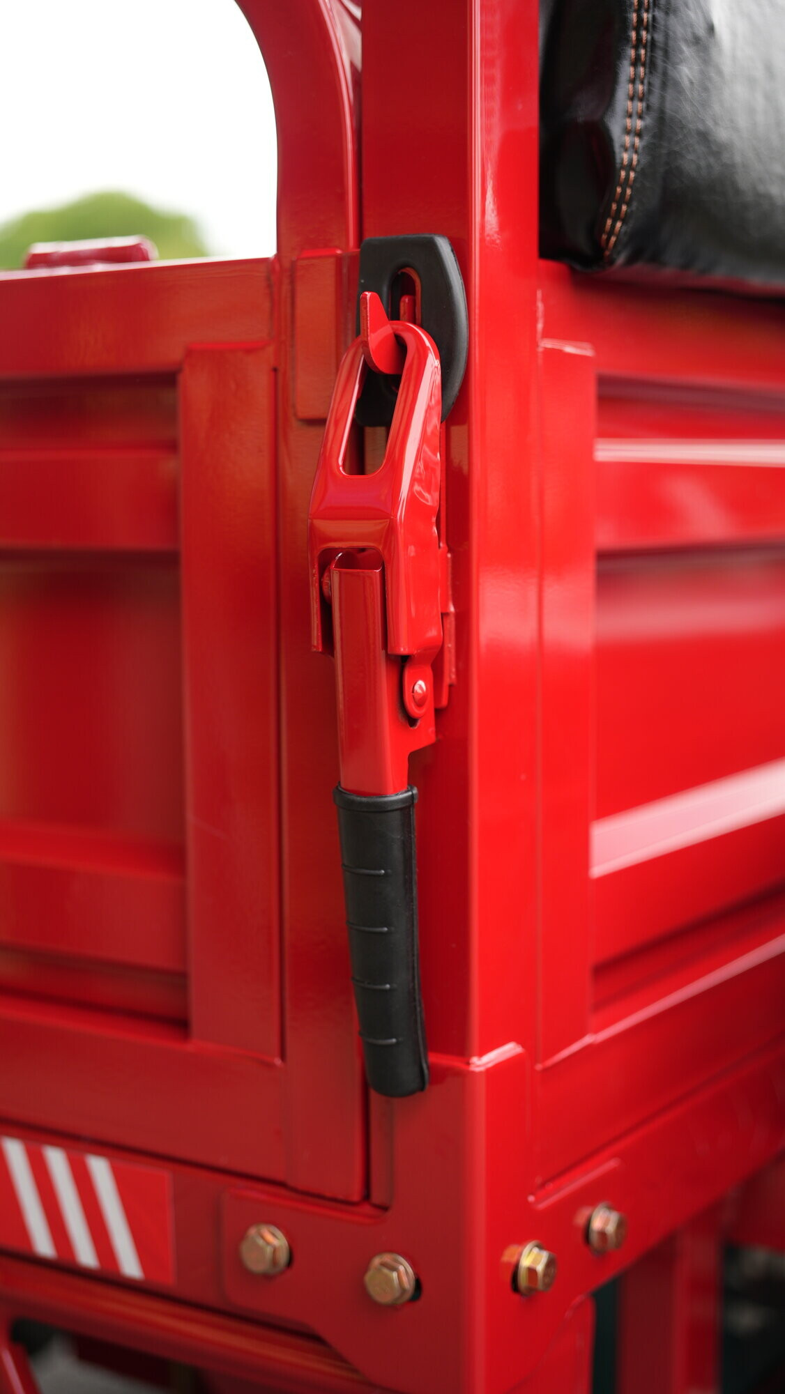 Přední vícestupňové motocyklové tlumiče, zadní listové pružiny a bubnové brzdy odolné vůči nečistotám poskytují jisté ovládání i při práci v areálu. - 🅿️ Parkovací brzda