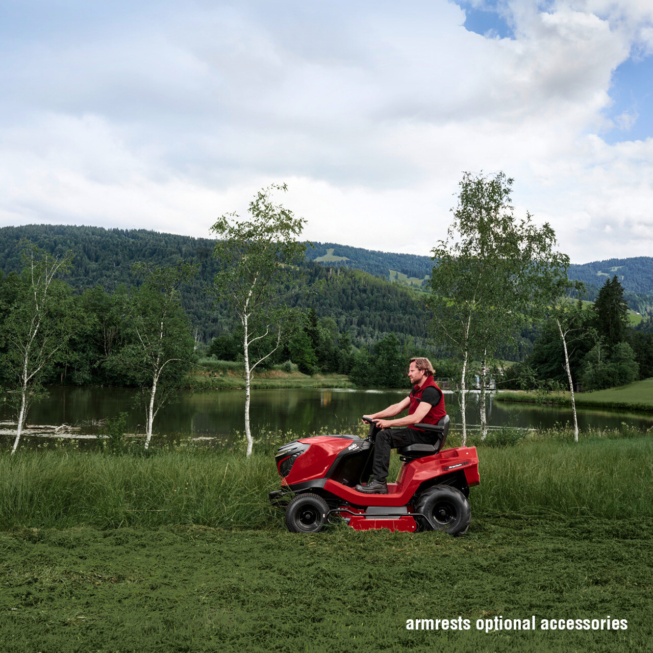 - Plynulý hydrostatický pojezd – komfortní ovládání rychlosti i směru jízdy.